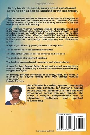 From the vibrant streets of Mumbai to the veiled courtyards of Tehran, and into the snowy resilience of Canadian suburbia, Across Borders, Beyond Beliefs is a searing memoir of a woman who dared to keep becoming.